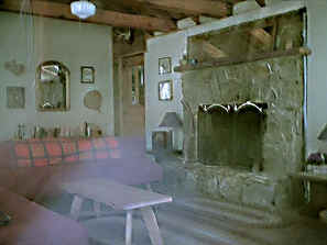 Charlie's hand made stone fireplace is the centerpiece of the cozy living
