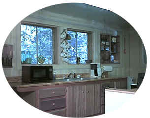 Note that the redwood cabinets, now offset by a new cobalt blue tile counter top, are the