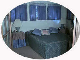doors, the bedroom has a king sized bed (with electric blanket) and a full closet.